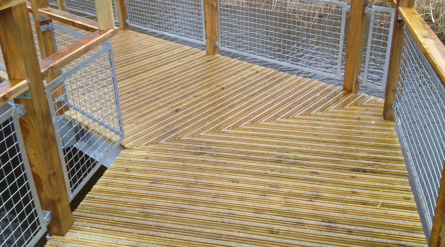 The second phase of the Antrim Boardwalk refurbishment project involved an extension and upgrade of the walkway, including the removal of existing slippery timber deck boards and replacing these with new anti-slip timber deck boards. For this, Gripsure’s non-slip Premier decking were carefully chosen for the new raised boardwalk and viewing platform area, installed by Martin Contracting Services Ltd.