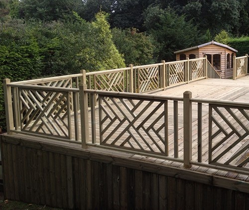 Decking Panels and decking treads are a great solution to add style to your decking area. The decking fence panels work great on their own or with decking spindles, available in Sun Burst or Cross Hatch design.